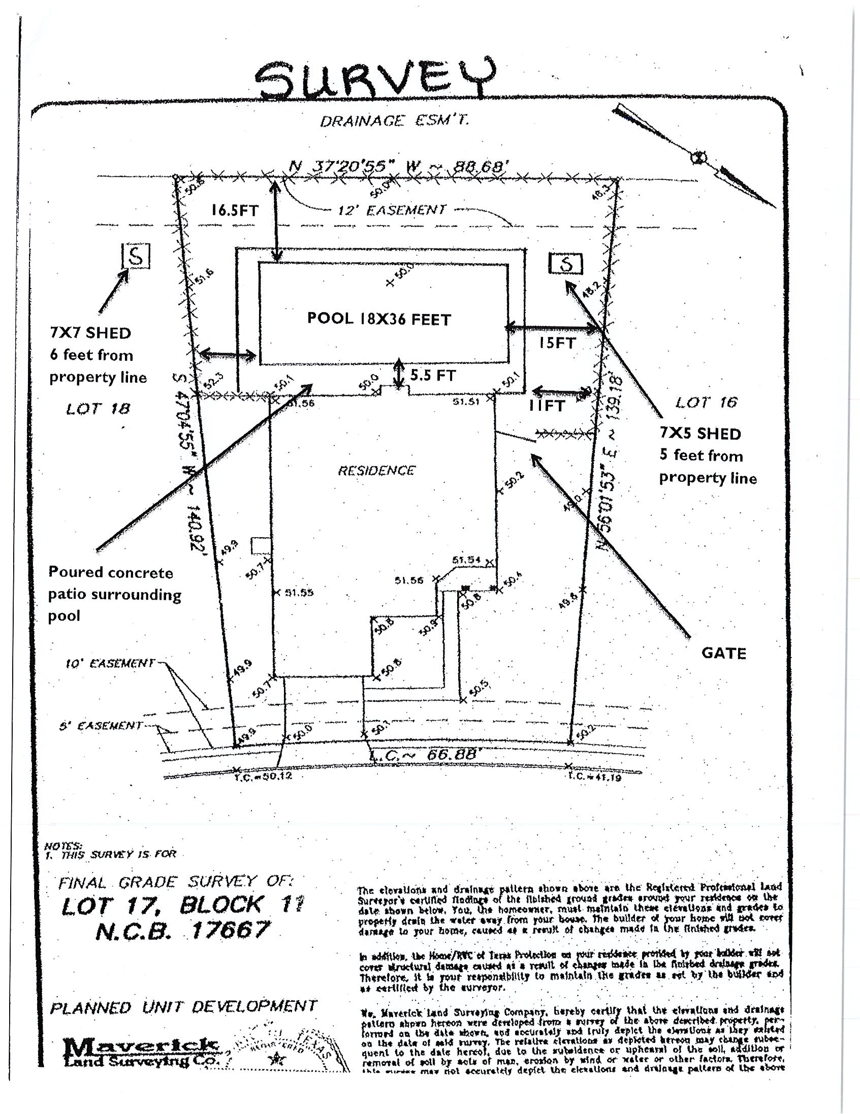 You can use a survey or hand-drawn plan, but it must show all measurements for property lines, fences, buildings, and the pool or hot tub.