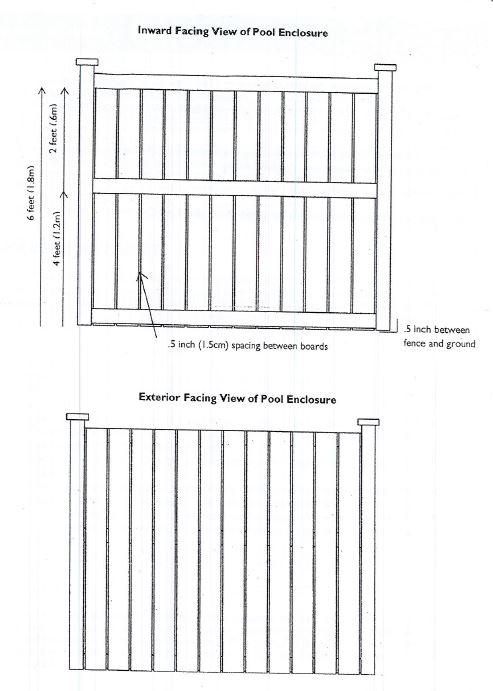 An enclosure is a fence, wall or deck surround that restricts access for safety.