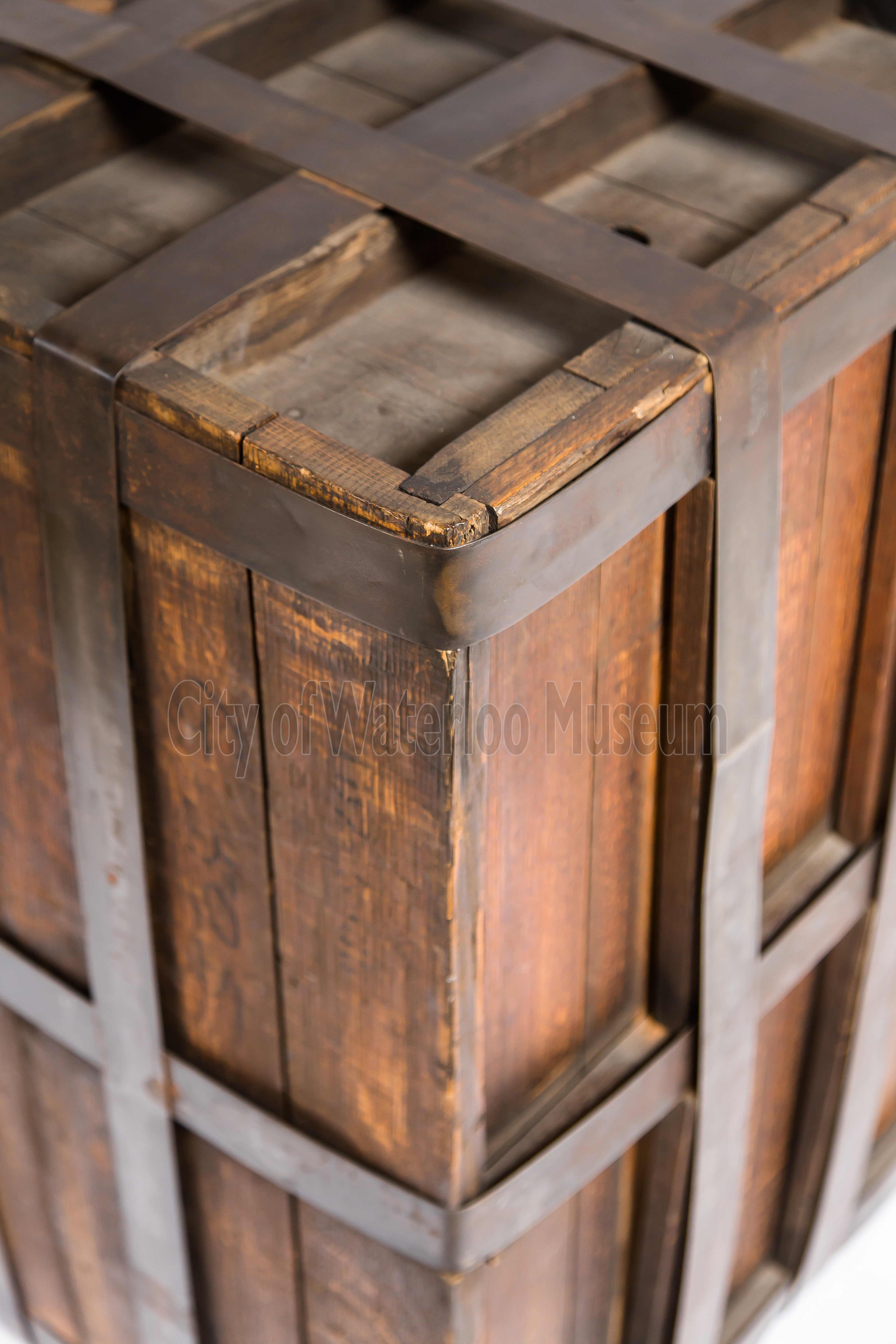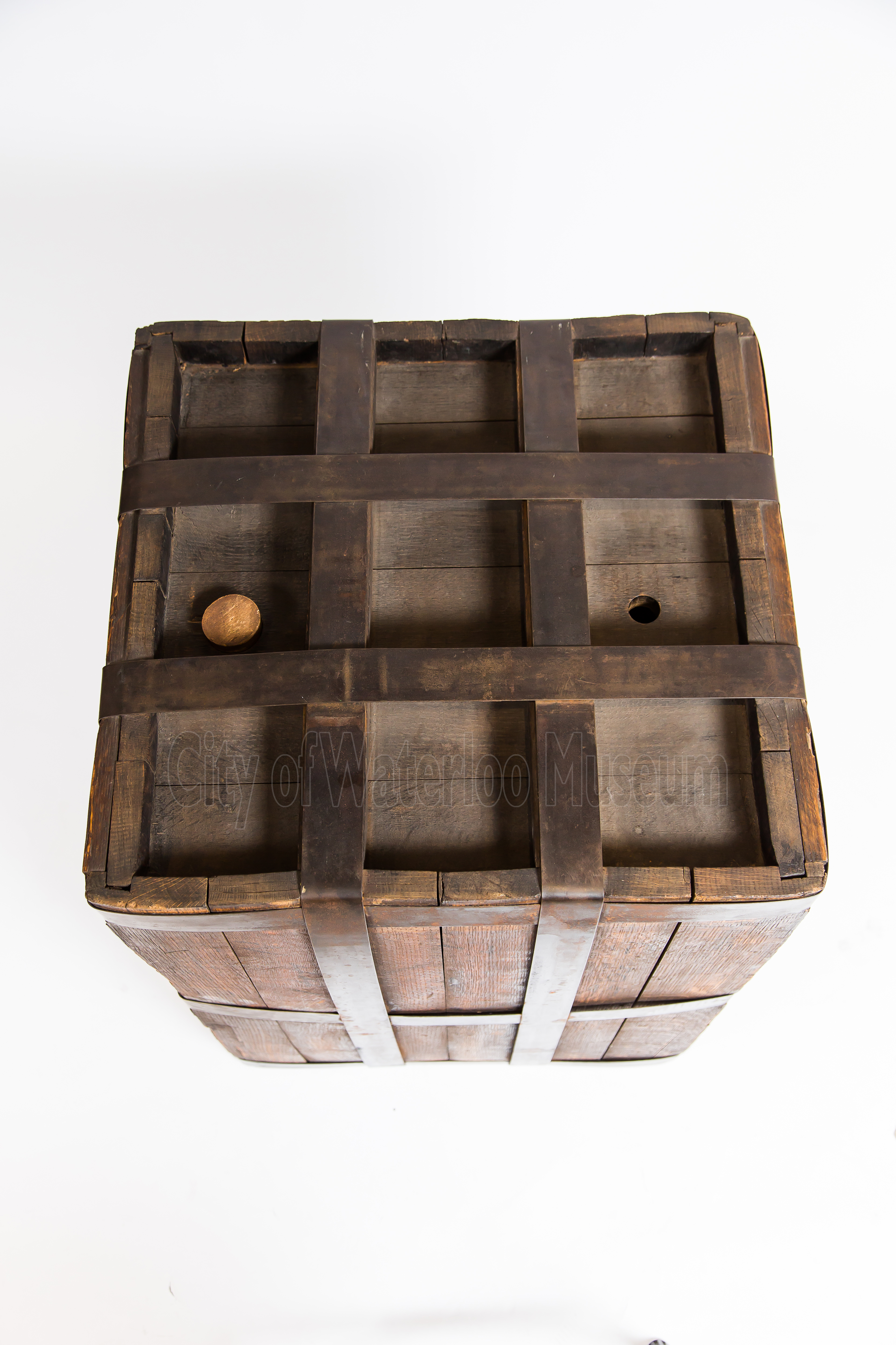 This barrel was officially known as “Experiment M-290” by Seagram Distillers in the 1960s. Arthur Downey, head of research at Distillers Corporation in Montreal, commissioned Waterloo’s Canada Barrels and Kegs Limited to make the world’s first-ever square oak whisky barrel. Why might you ask? It seems someone had the idea that the shape of the barrel might improve the flavour of the whisky and speed up the maturation process. To test this theory, a standard round barrel and the square barrel were both filled with whisky and left to mature side-by-side. Five years later, the experiment determined there was no difference. The experiment was not considered a failure even though the square barrel was not watertight, tough to move, costly and difficult to build. M-290 was the first and only square barrel made.