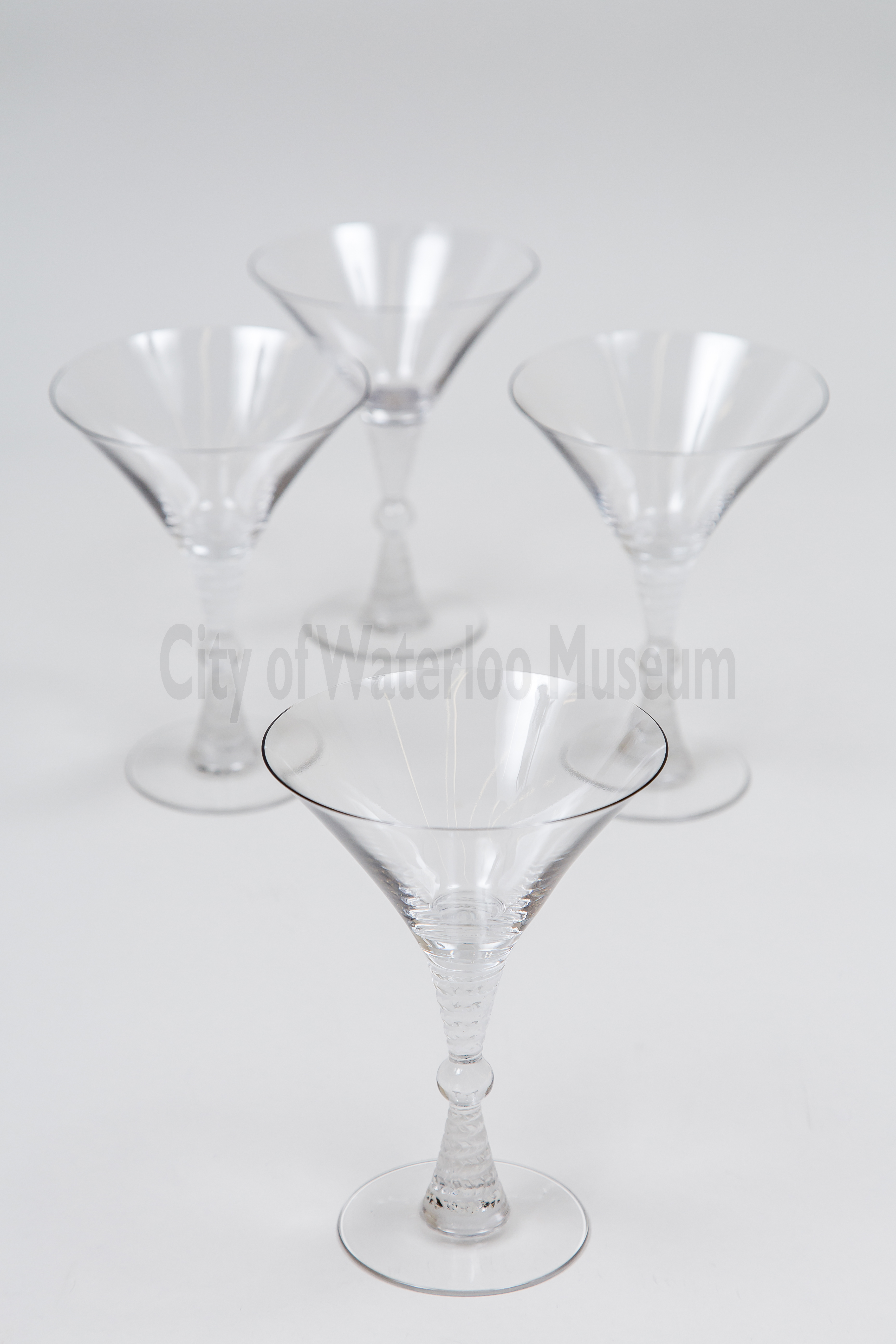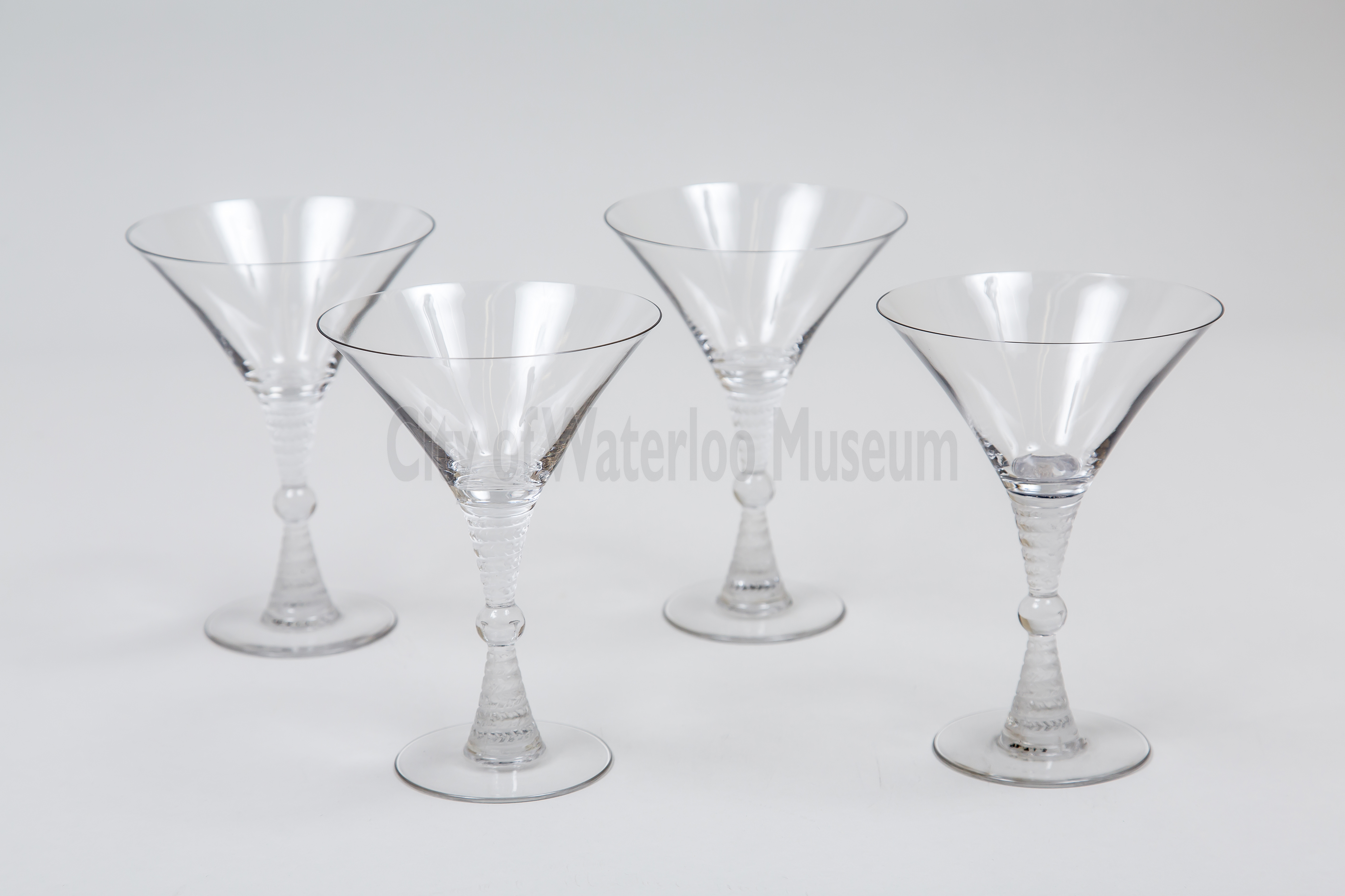 Shaken or stirred? This stunning set of four cocktail glasses signed “Lalique France” is the ultimate stemware for your cocktail. The elegant design reflects the lively spirit of the Art Deco period. French designer René Lalique designed a wide and imaginative range of decorative glassware between 1908 and 1945. His creations were mass-produced in his factories in France and exported around the world. Lalique is one of the first luxury brands and one of the world’s most renowned glassmakers.