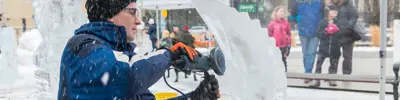 Experience the artistry of winter in real time as 3 award-winning ice carvers transform crystal-clear blocks of ice into stunning Winter Olympic inspired sculptures.