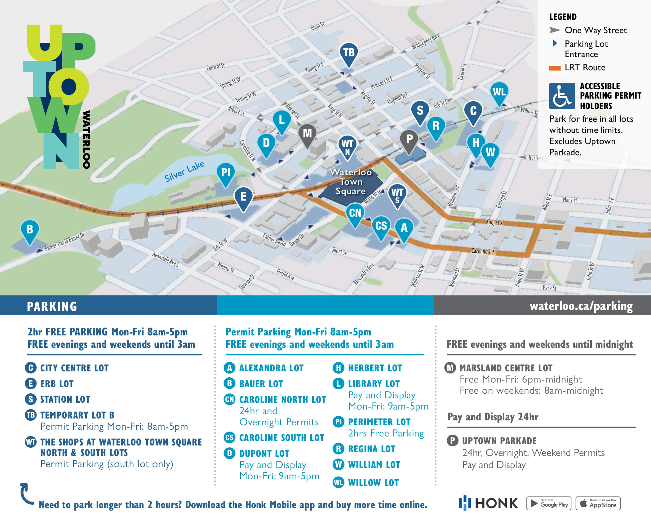 Find free and paid parking options in Waterloo, including street parking and uptown lots.