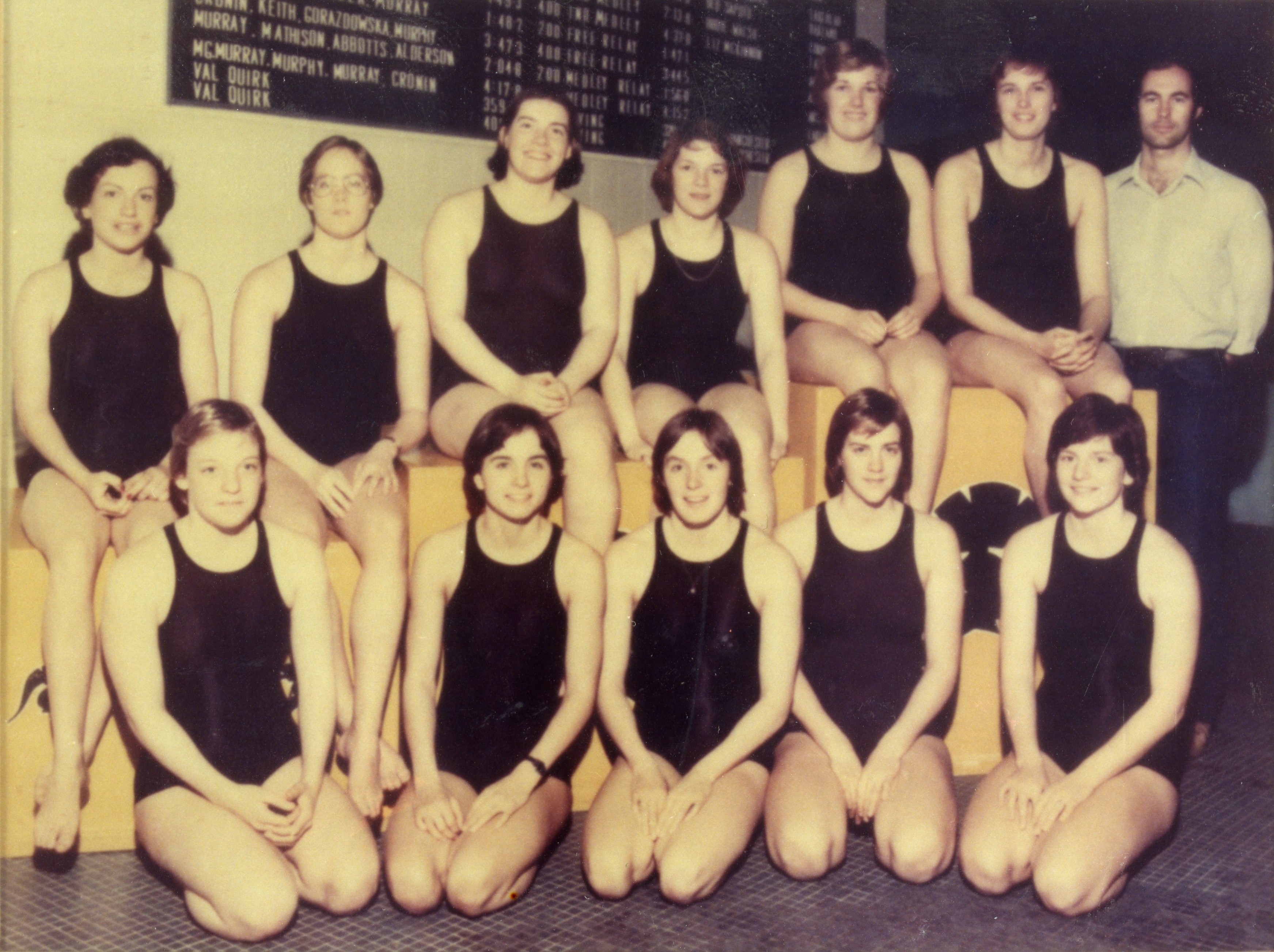 Peggy Mattson, Brena Lawry, Maida Murray, Cathy Adams, Karen Murphy, Elaine, Keith, Brian Cartlidge (Coach)