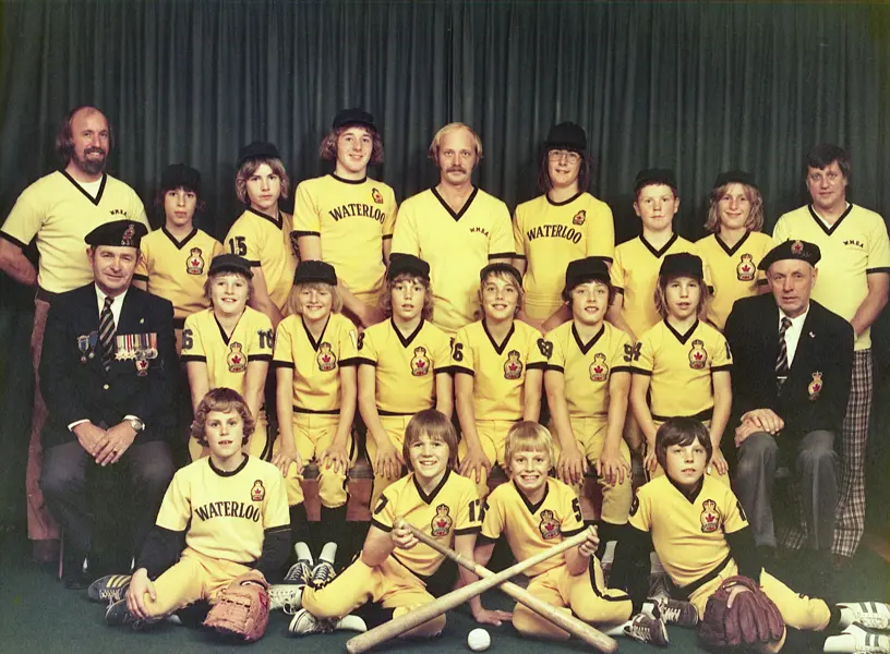Middle: Len Dunkel President Waterloo Legion, Dean Geisel, David Wettlaufer, Guy Pfaff, Greg Shawen, Andy Boegel, Chris Conrath, Glen Purdy Sport Officer Waterloo Legion